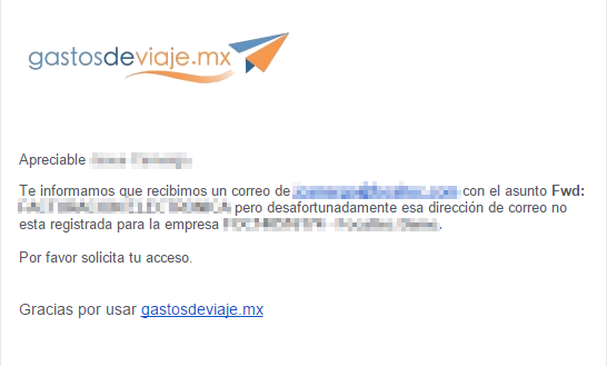 La causa es debido a que la dirección desde la cual hiciste el reenvío no se encuentra registrada en el sistema y por lo tanto no la reconoce como un usuario válido. Por favor reenvía el correo desde la misma dirección de correo que usas para iniciar sesión en el sistema.