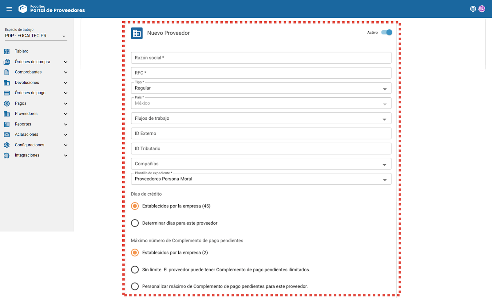 Pasos para habilitar la integración y configuración de la Bóveda del SAT en el Focaltec Portal de Proveedores:
