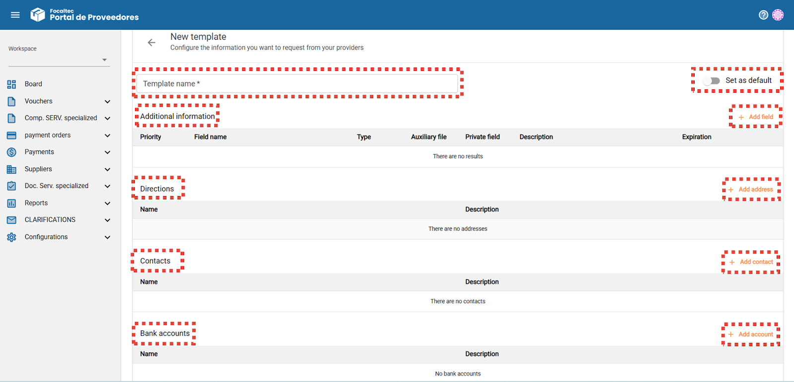 Set as default. Option that allows you to set this template as the default so that it is automatically assigned when registering a new Supplier.
